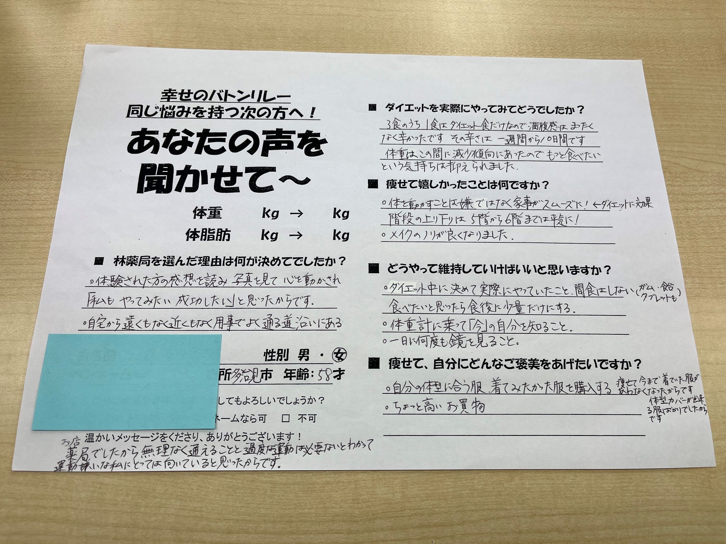58歳女性 マイナス11kg 達成おめでとうございます!