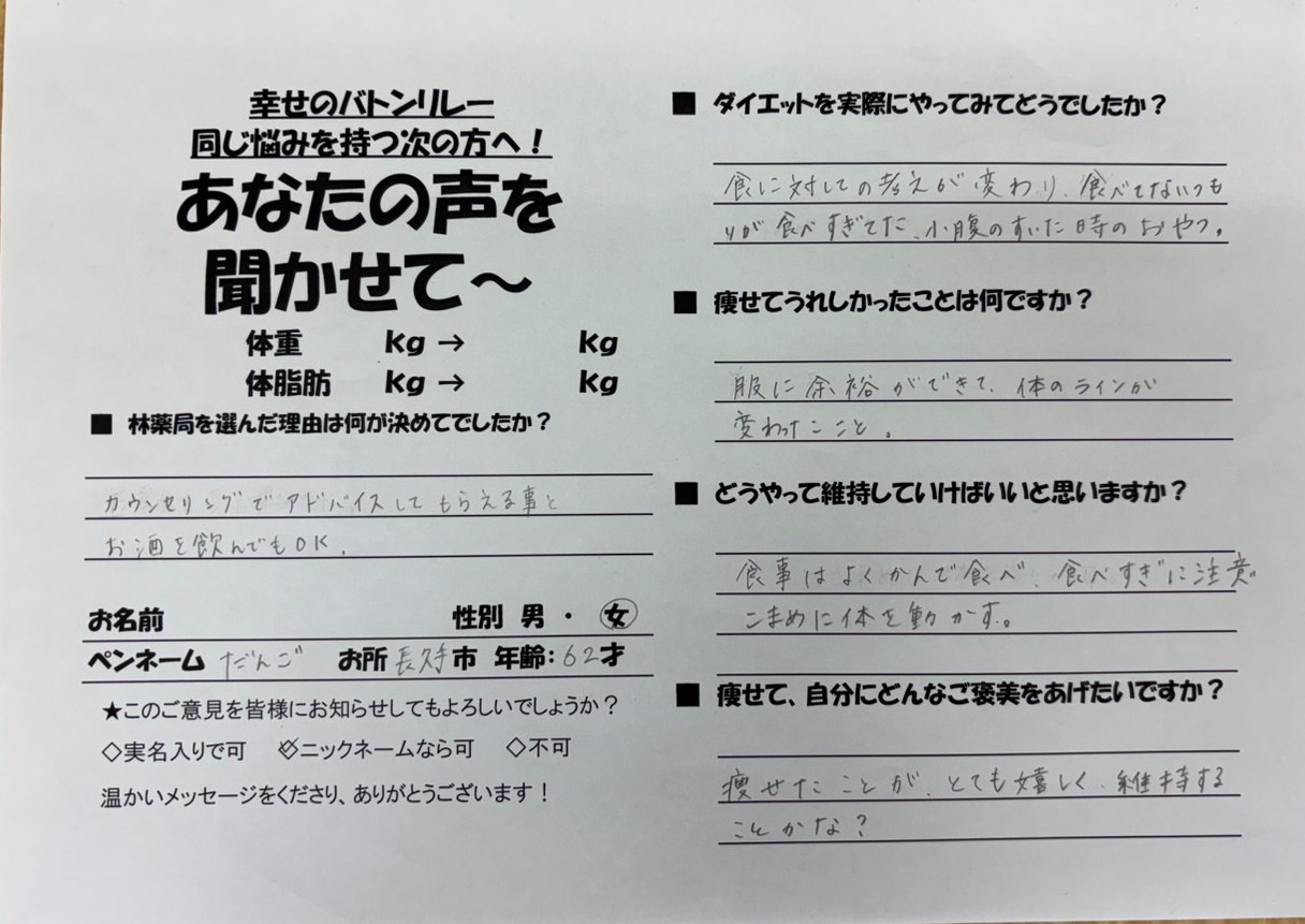 長久手市にお住まいの62歳 身長155センチのだんごさん